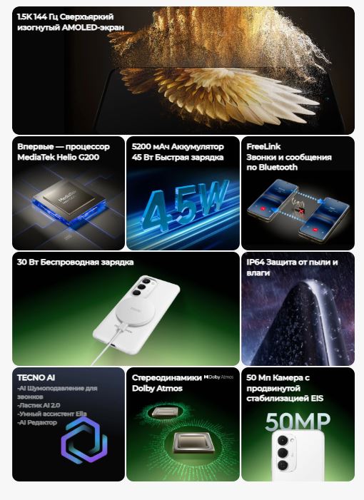 Характеристики Смартфон Tecno Spark 40 Pro+ 8/256GB White/Белый